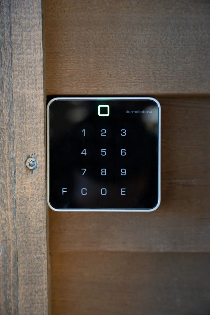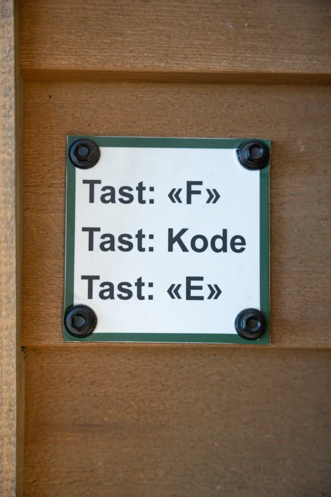 Når du bookar badstova får du tilsendt kode til døra på sms og epost. Opne døra med tilsendt kode. Døra vil då vere ulåst i tidsrommet du har booka. Døra vert låst automatisk når bookinga er over.